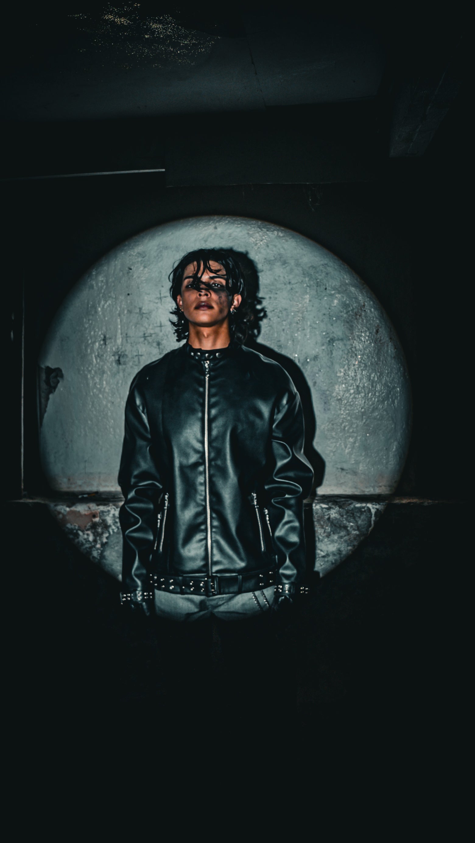 A study in rebellion and refinement. This faux leather jacket transcends the ordinary, sculpted in a sleek silhouette that speaks of control and chaos in equal measure. The body is cut with clean precision, while exposed vertical zippers slash across the surface like deliberate scars—an ode to defiance.